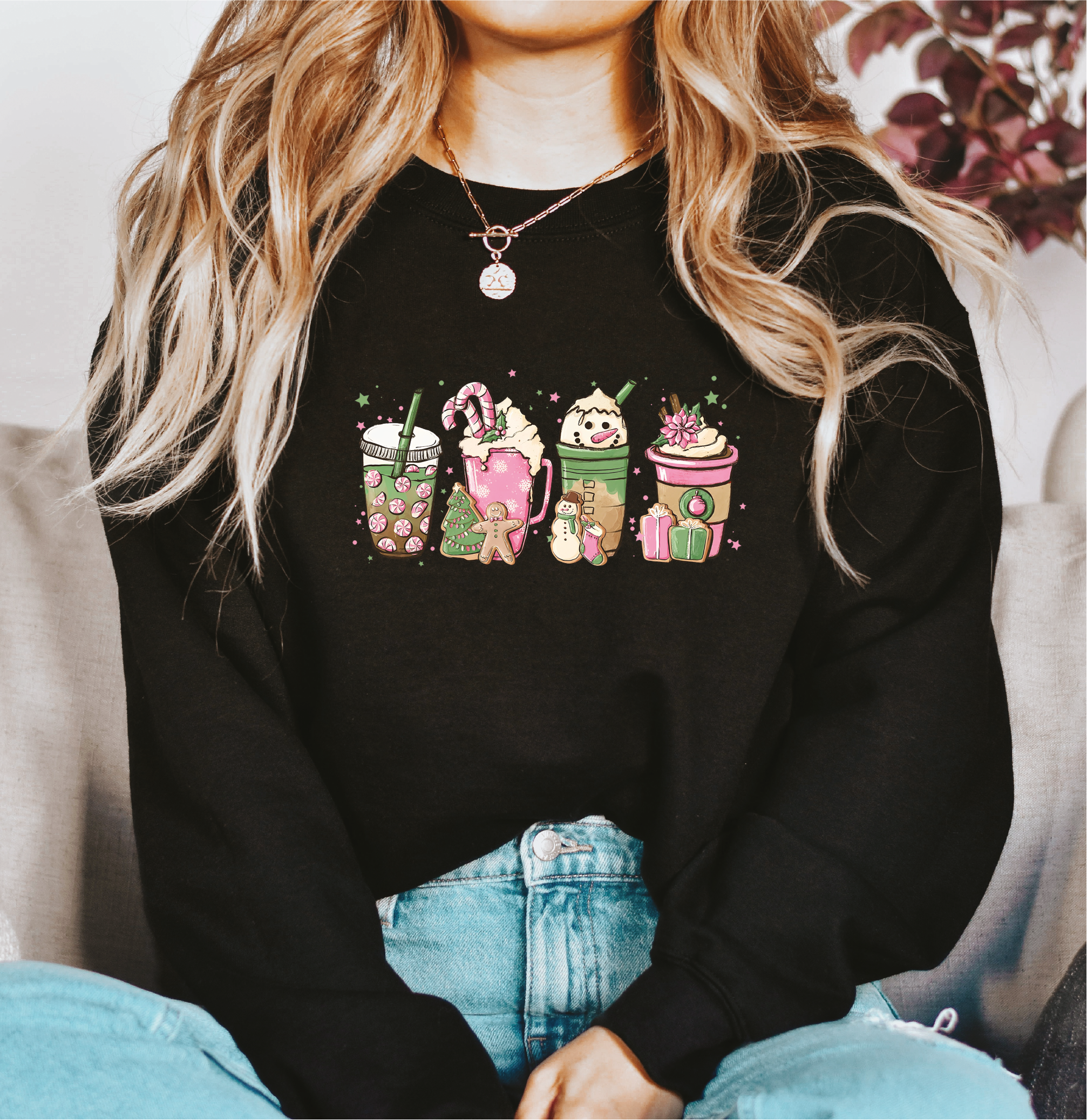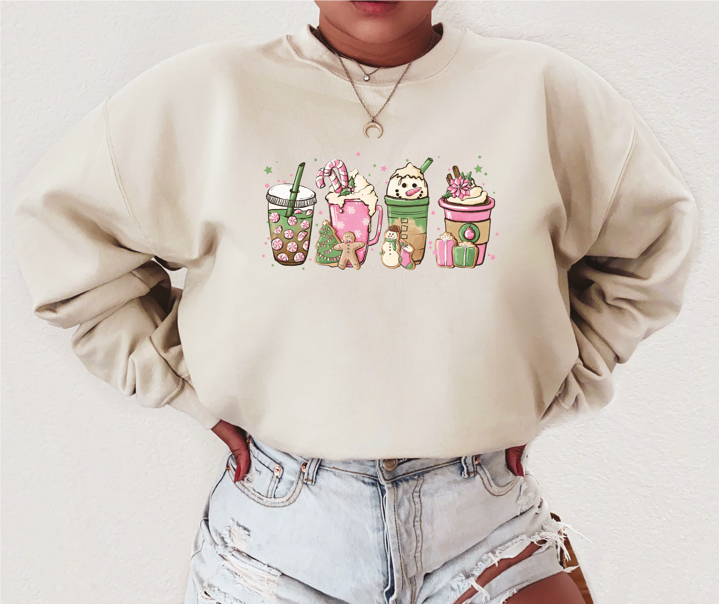 Winter Drinks {Pink} Classic Crew Neck Sweater