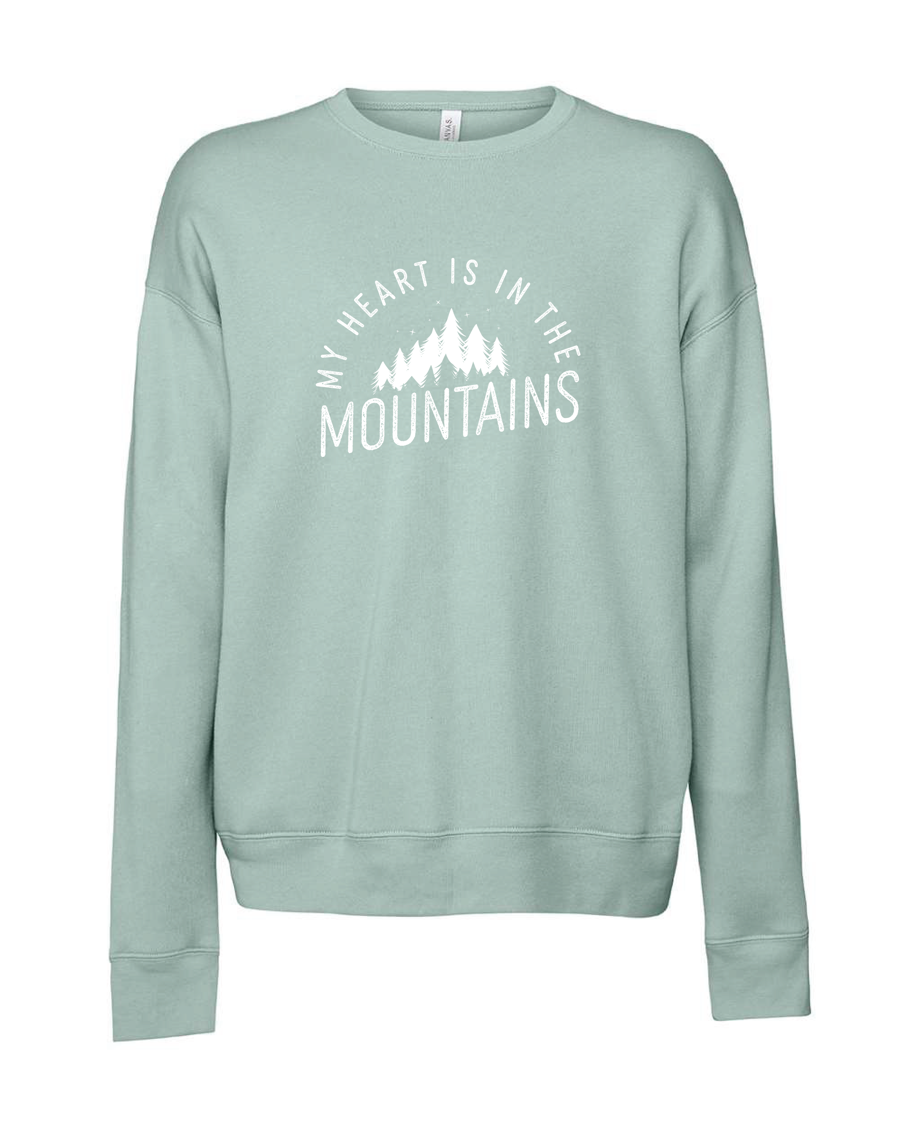 SALE- MY HEART IS IN THE MOUNTAINS Plush Crew Neck Sweater- DUSTY BLUE - XLARGE