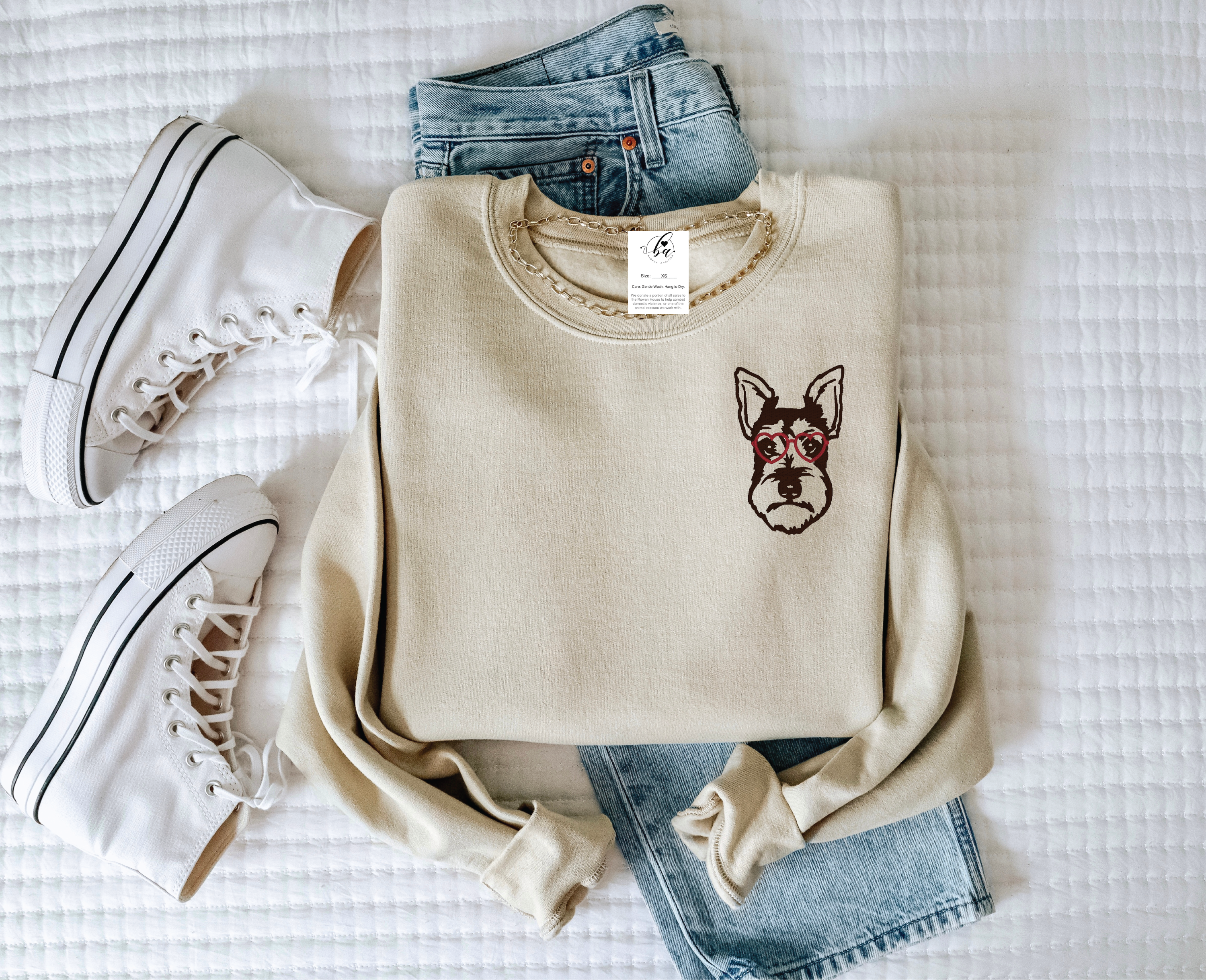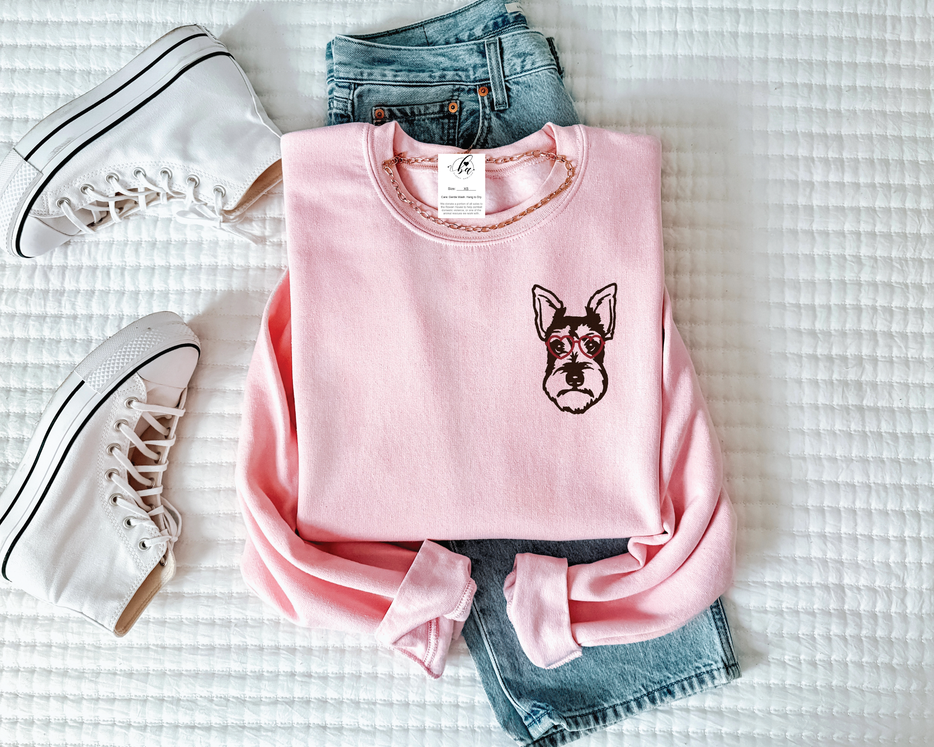 Schnauzer with Heart Glasses Embroidered CLASSIC Crew Neck Sweater