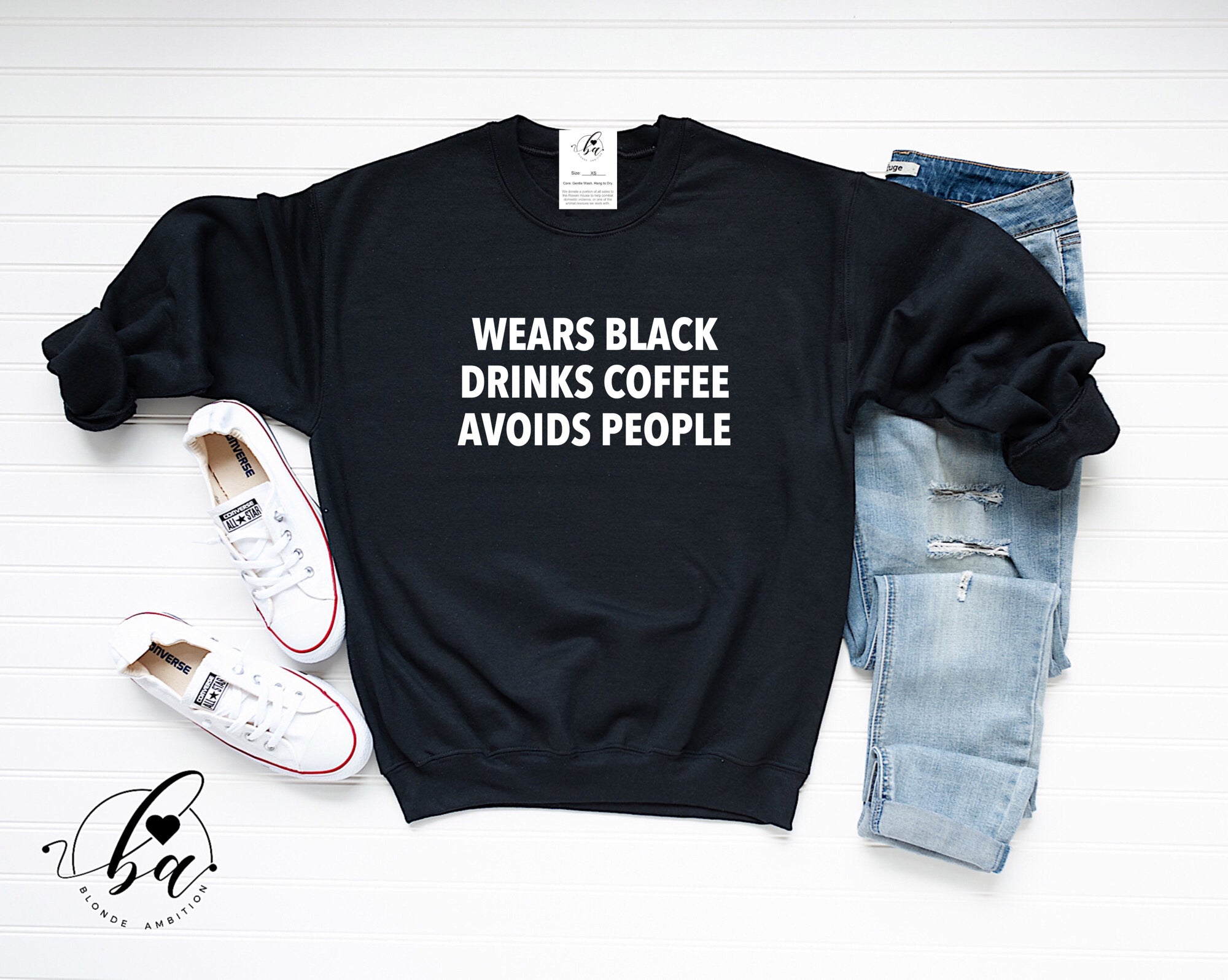 Wears Black, Drinks Coffee, Avoids People Cozy Crew Neck Sweater