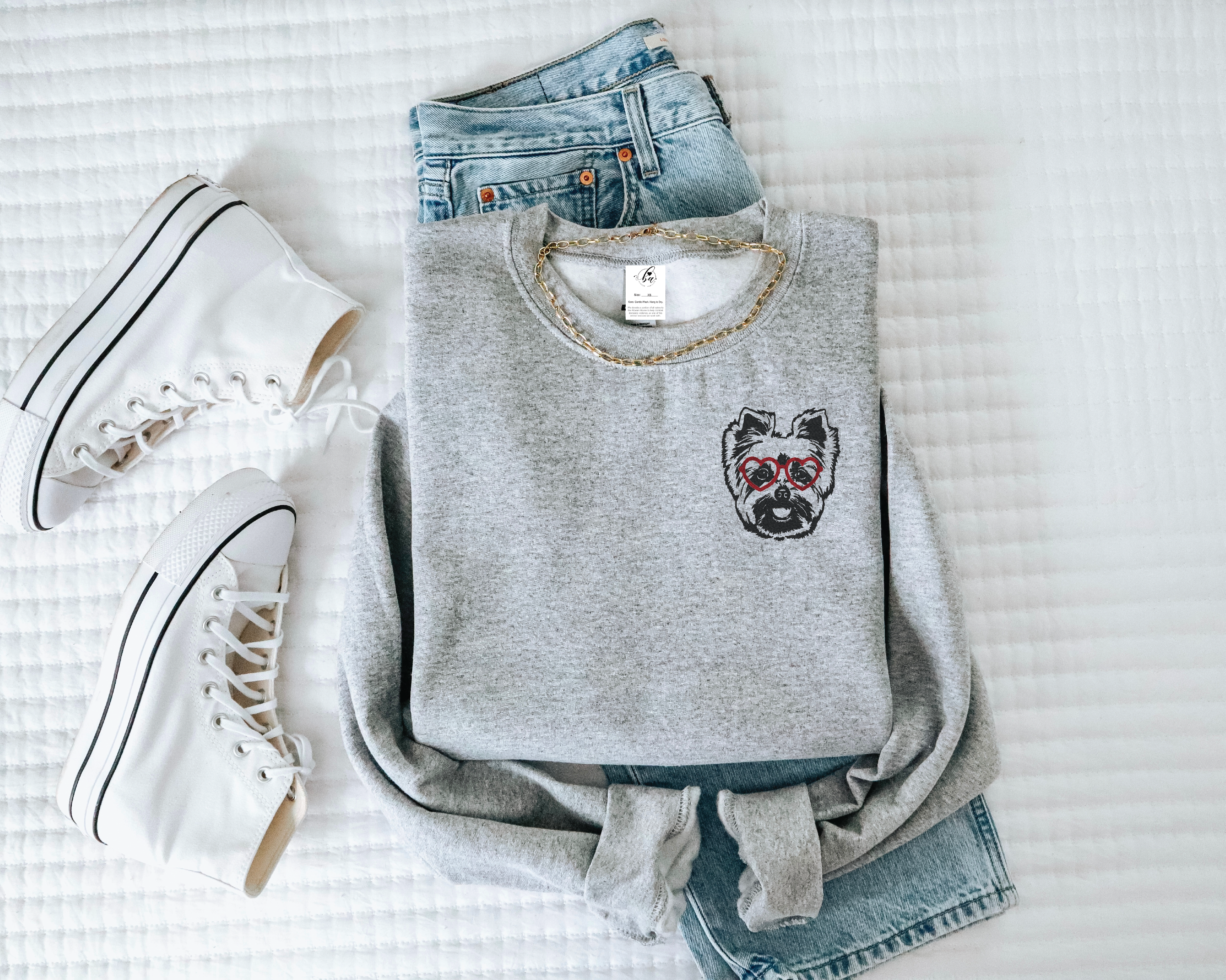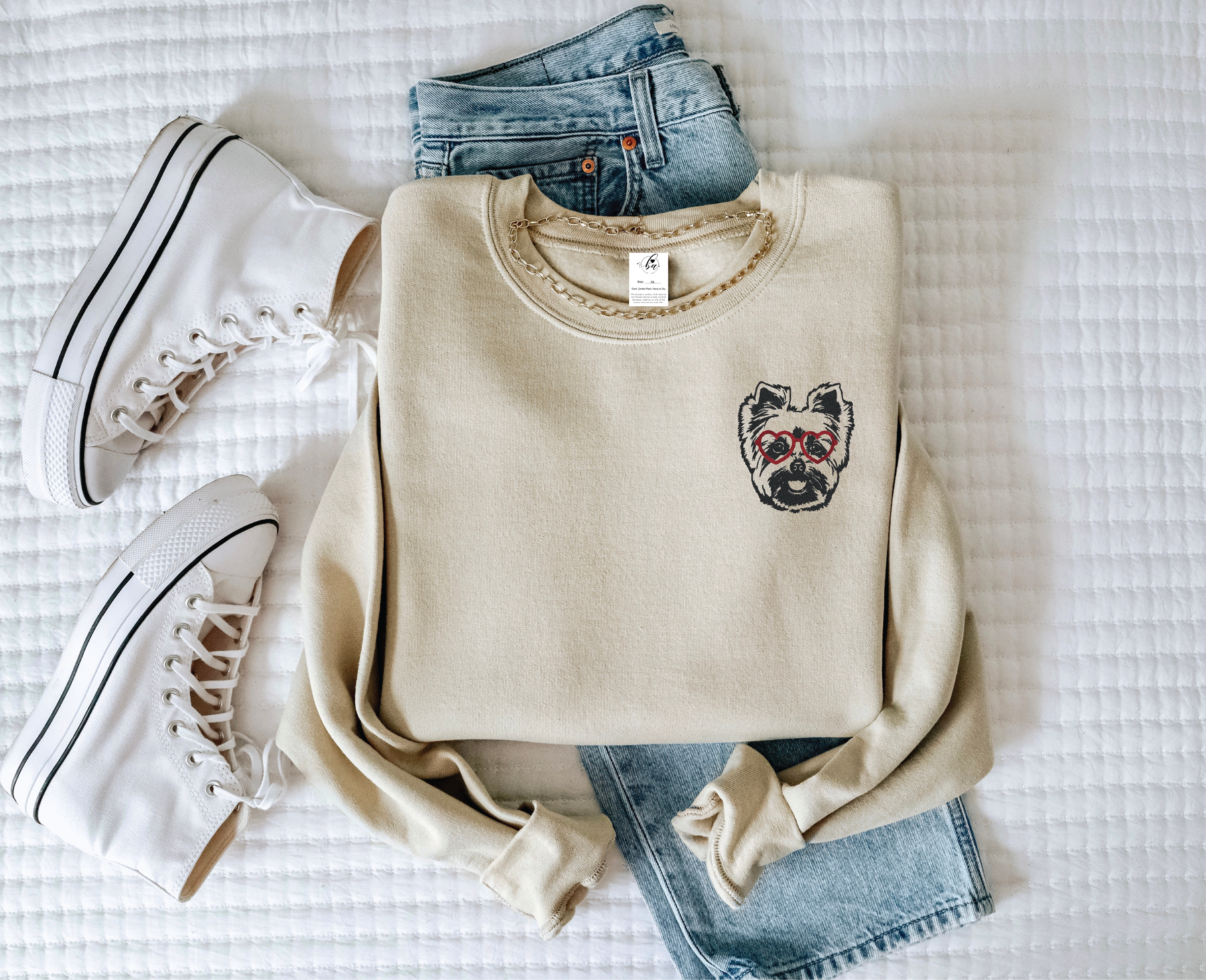 Yorkshire Terrier with Heart Glasses Embroidered CLASSIC Crew Neck Sweater