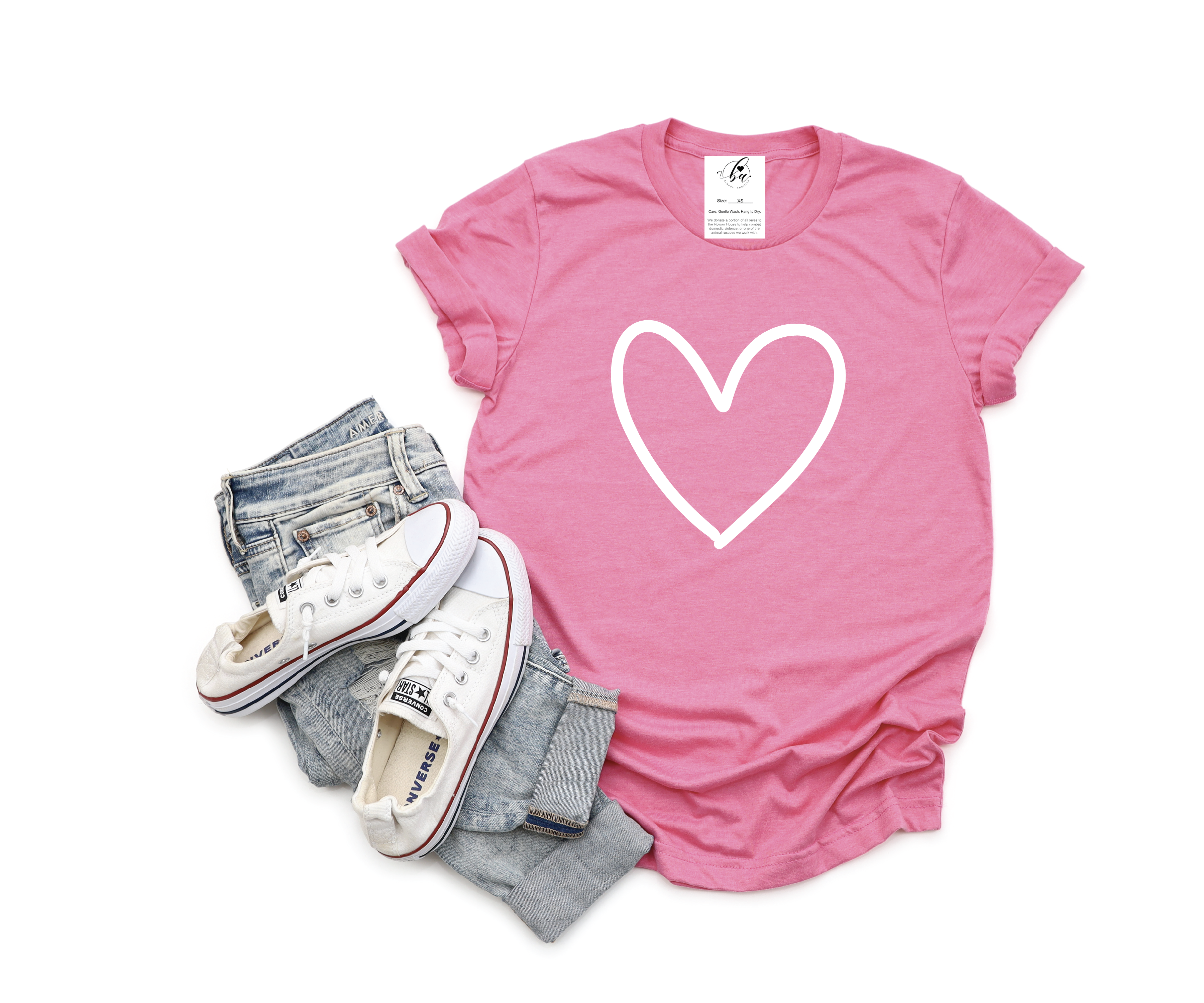 Color: Heather Orchid Tee & White Heart