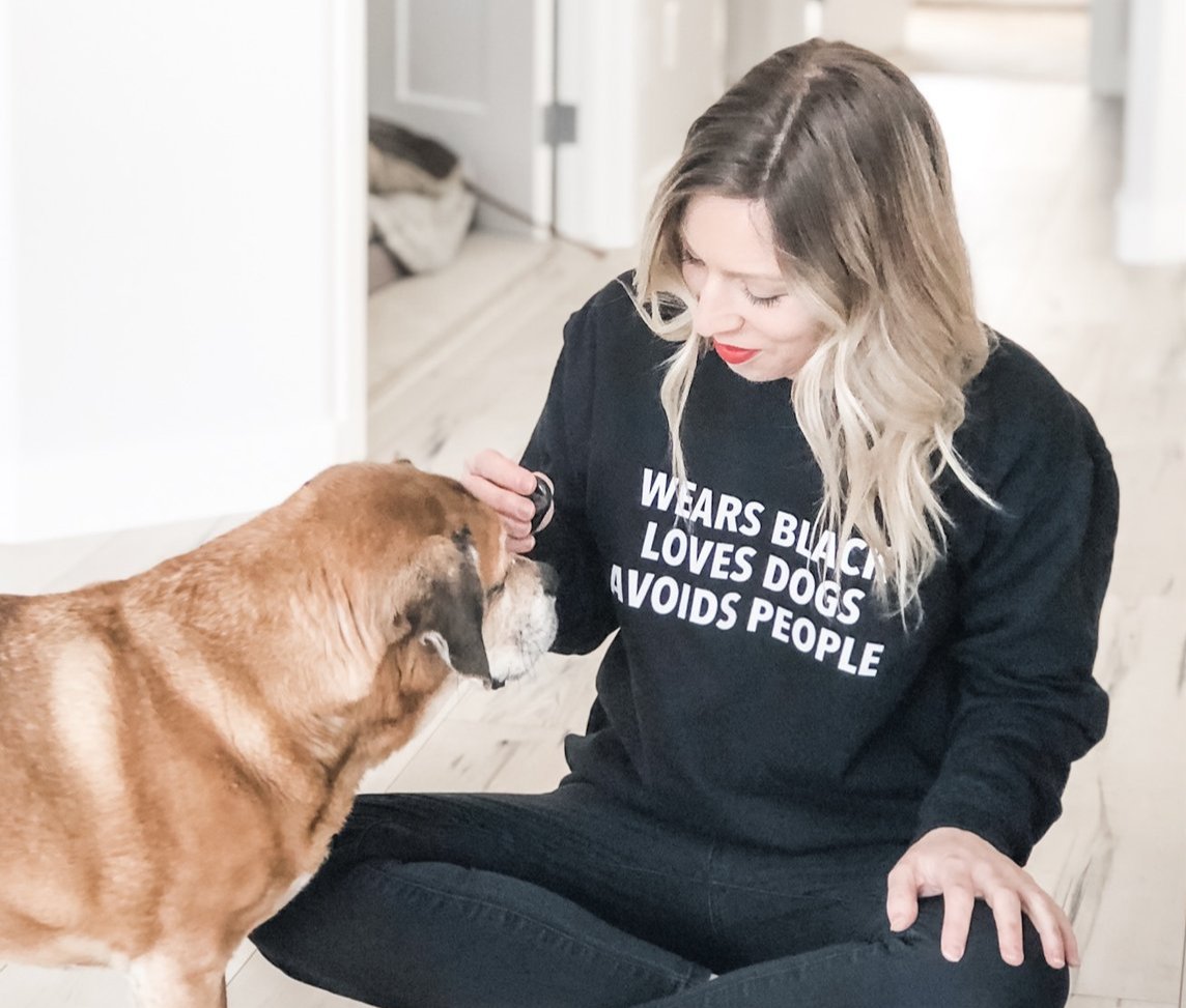 Wears Black, Loves Dogs, Avoids People - Cozy Crew Neck Sweater