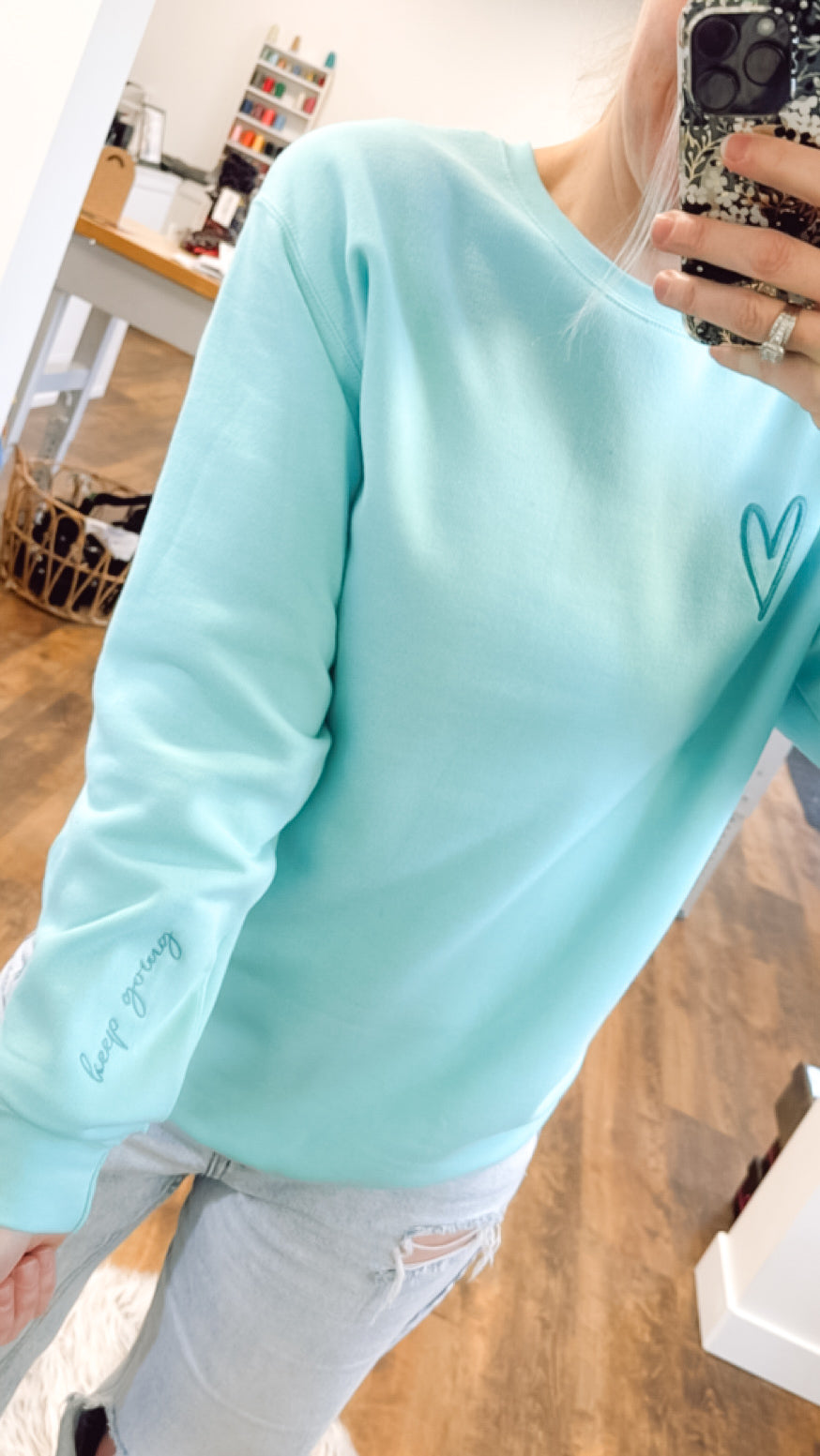 Keep Going Embroidered Cozy Crew Neck Sweater