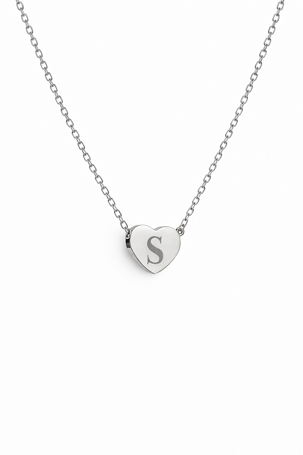 Custom Engraved Initial on Heart Pendant Necklace