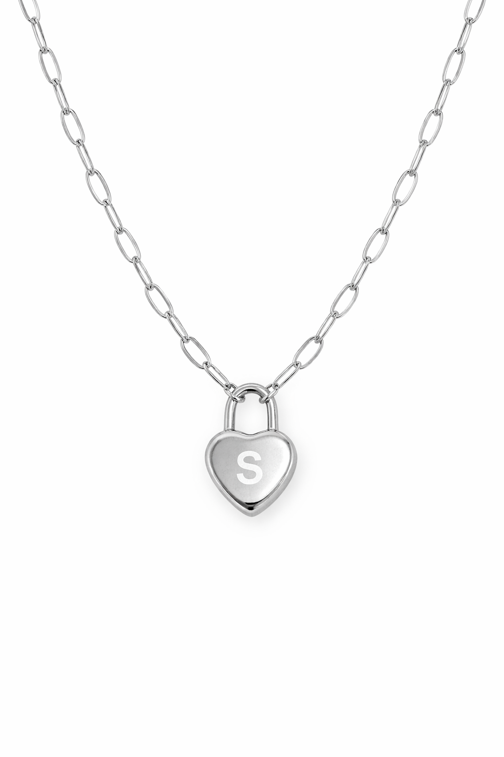 These exclusive necklaces are designed, engraved and assembled in house by us! It features your custom initial on a heart lock pendant on a paperclip style necklace! These make the perfect piece for both yourself or to gift.