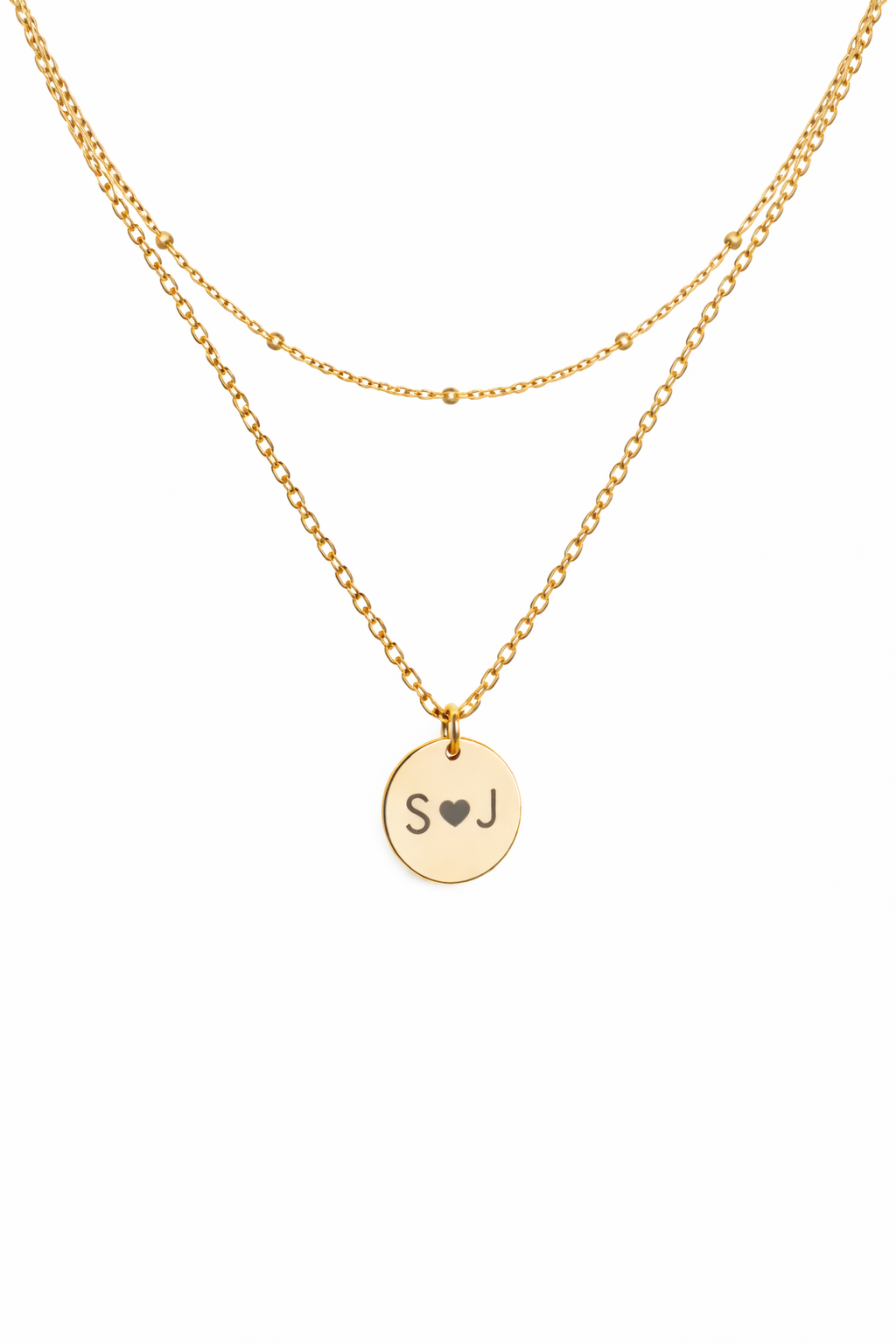 Customizable {Initial 🖤 Initial} Engraved Layered Pendant Necklace