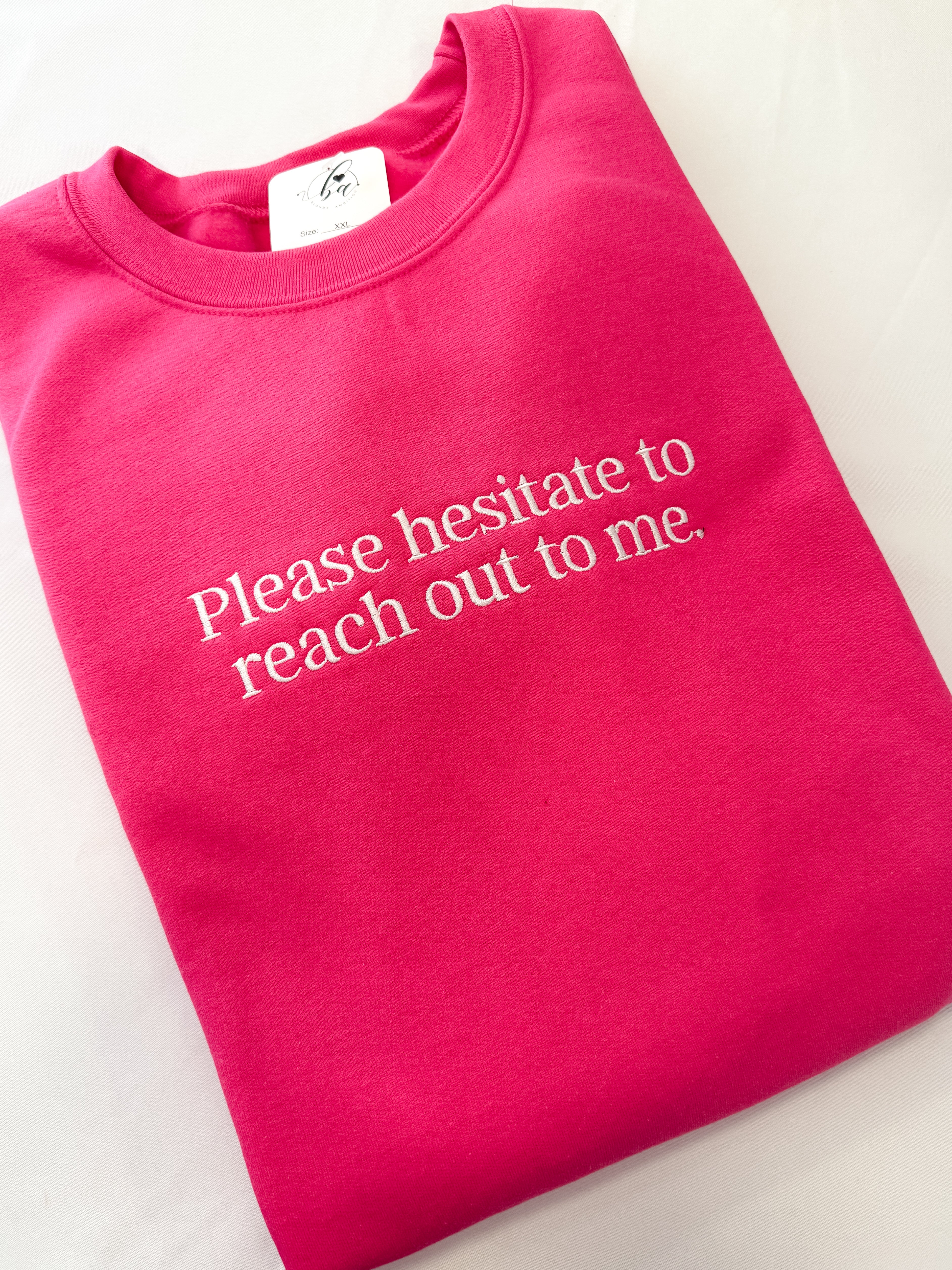 SALE: 2XLARGE Classic Crew Please Hesitate to Reach Out To Me- Dark Pink w/ White Embroidery