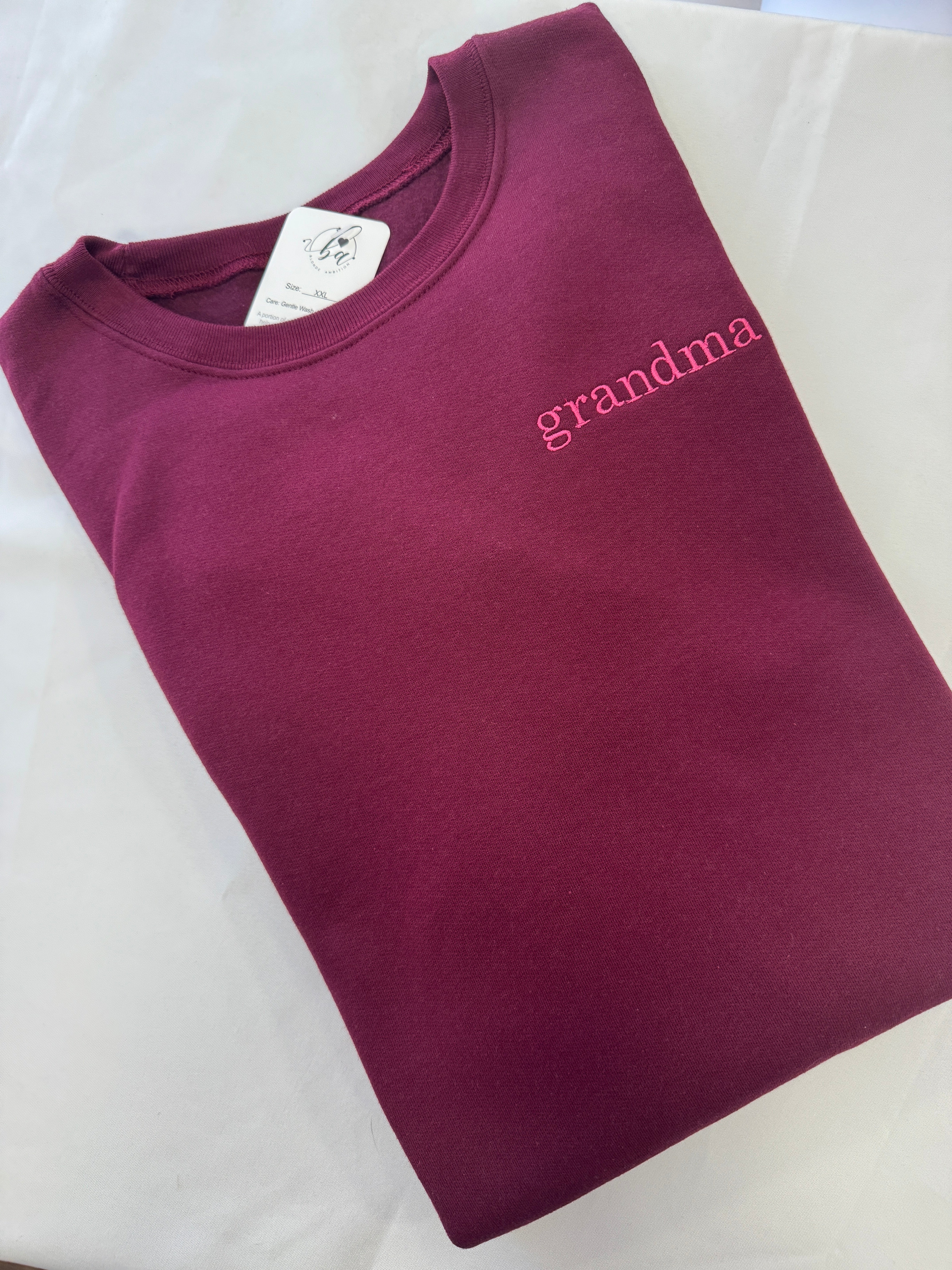 SALE: 2XLARGE Signature Crew - Maroon w/ Pink Embroidery Grandma