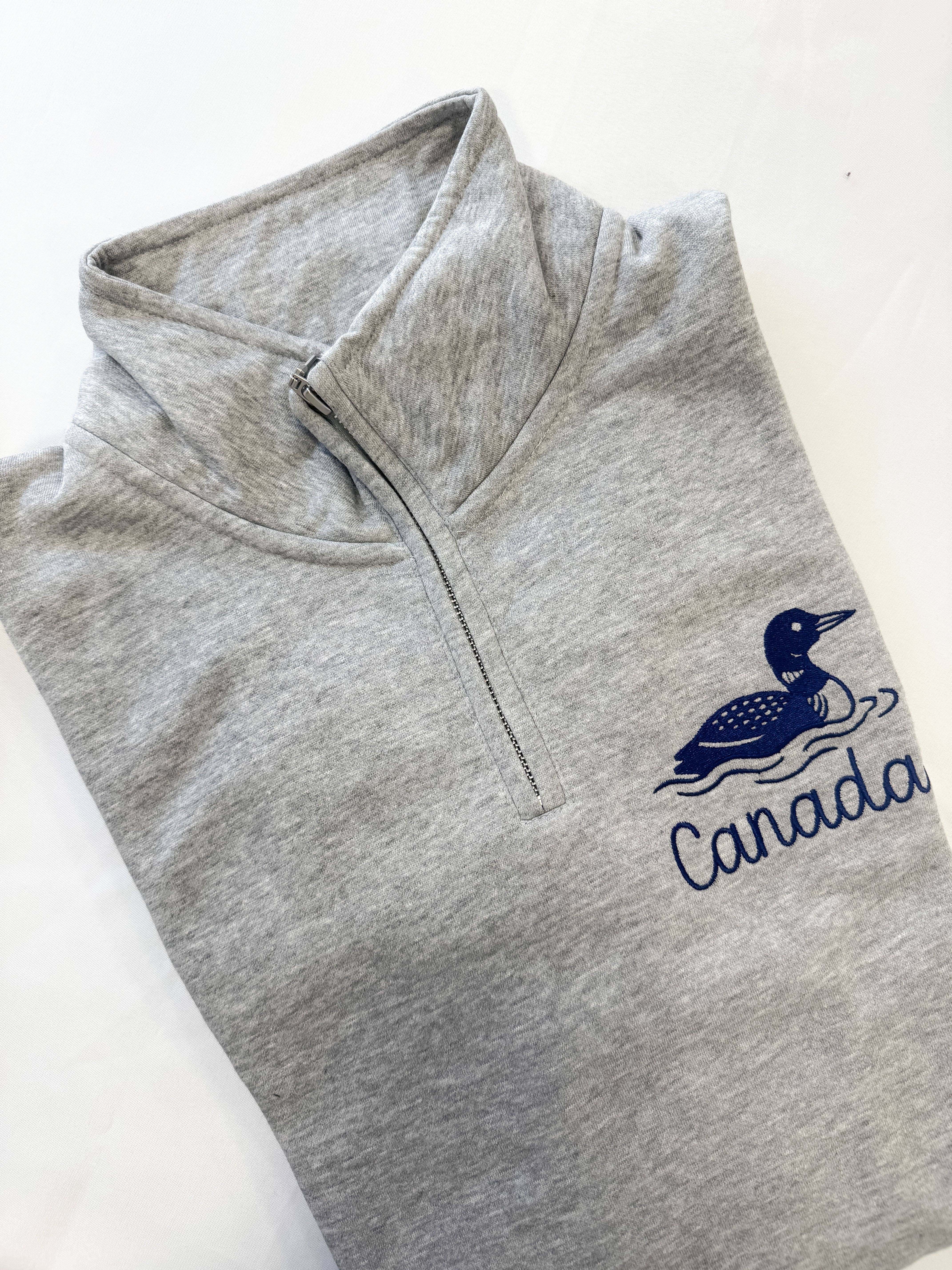 SALE: Small Luxe 1/4 Zip Grey - Embroidered Canada Loon