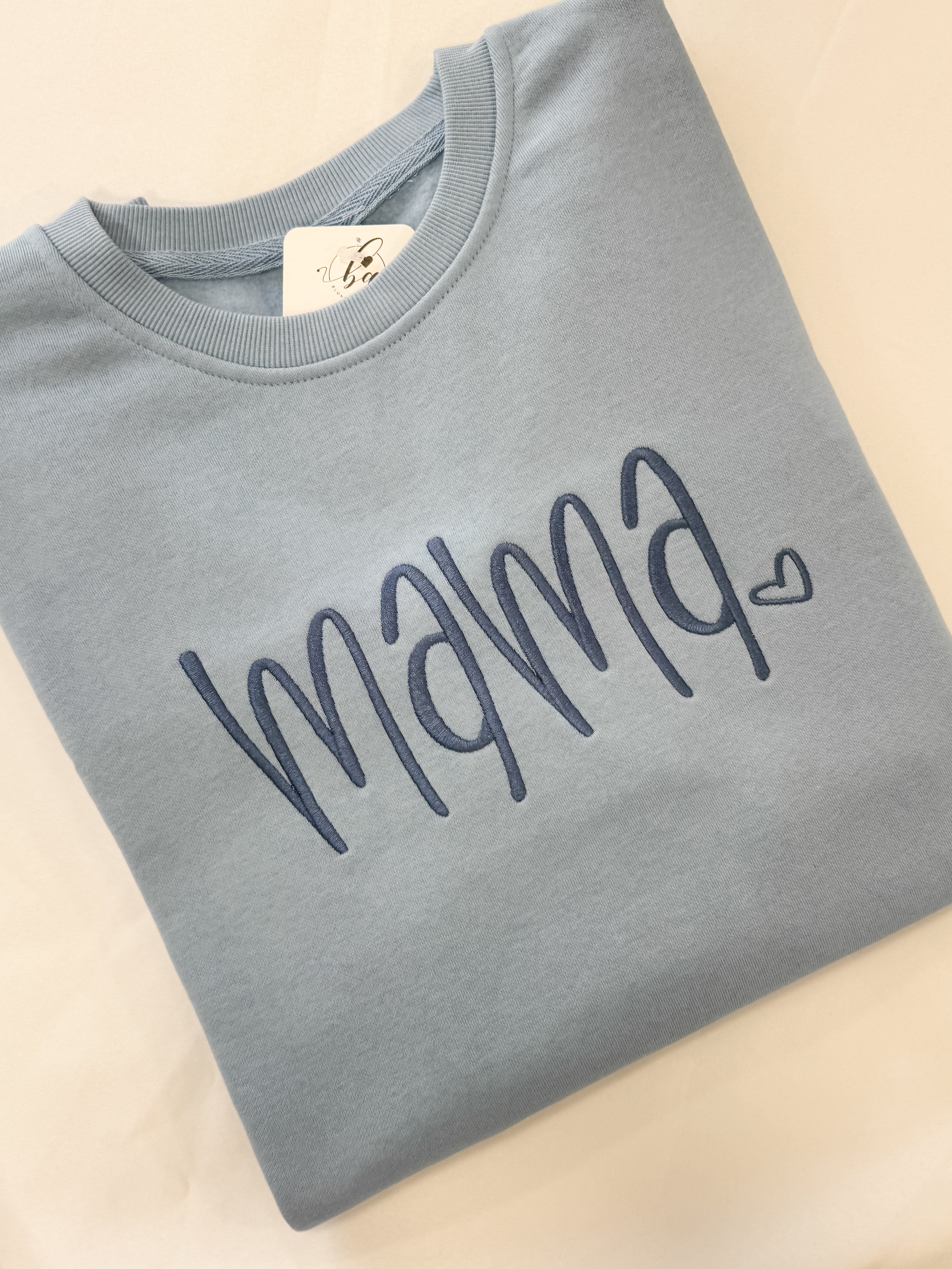 SALE: SMALL Luxe Blue Embroidered MAMA Heart