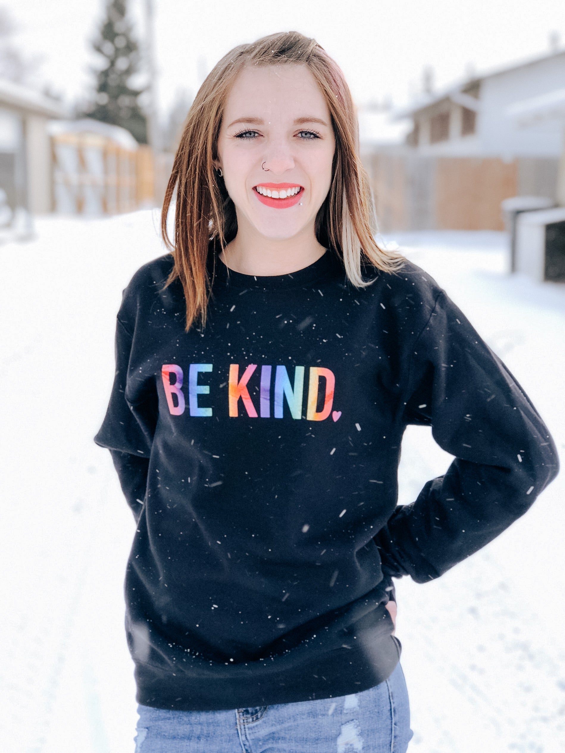 Be Kind Cozy Crew Neck Sweater - Rainbow